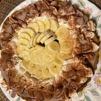 スキレットでタルトが出来るなんて!チョコとバナナと生クリームの組み合わせは間違いないです^ ^