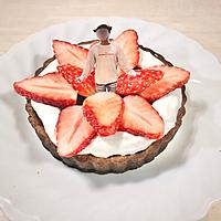 - 7 5に6、ホイップクリームを盛り付け、ココアパウダーをかけて完成です。