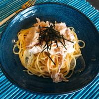 明太子がしっかりと絡んだパスタに大根おろしと豚しゃぶを添えることによって、さっぱりといただけて腹持ちもいい一品です。 フライパンなどは使わず、茹でて和えるだけなので手間も時間もかかりません!ぜひお試しください。