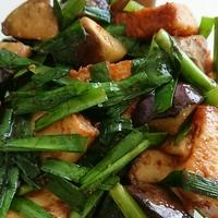 - 1 木綿豆腐は1cm幅に切り、ナスはヘタをとり乱切りにします。