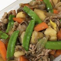 牛肉のジューシーな旨みが染み出した上品な味わいの肉じゃがです。ホクホクのじゃがいもに、玉ねぎ、人参、しらたきが入った具だくさんの定番おかず。じゃがいもはレンジで下準備をすると、味がよく染みて時短にもなります。優しい甘みの和風だしベースで、お子様からご年配の方まで楽しめる味付けです。冷めても美味しく、作り置きにも向いています。