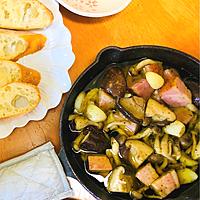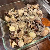 ジャンボな椎茸、しめじ、角切りベーコン、丸ごとにんにく、乾燥パセリで作りました〜!美味し過ぎて、バゲットとワインが進む〜♪