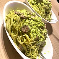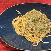 スパゲティは表記よりも少し短めに茹でるとアルデンテに仕上がります。 オリーブオイル、粉チーズの量はお好みで調節してください。 牛乳の代わりに、豆乳でも代用可能です。 お好みで、松の実やクルミを加えると、よりジェノベーゼらしく仕上がります。