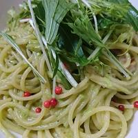 簡単!さっぱり! バジルの代わりに、水菜を使用して作るジェノベーゼ風のパスタです。 材料を合わせて撹拌するだけでソースが出来るので簡単に作れます! オリーブオイルが少なめで牛乳が入っているので、あっさりとした仕上がりです。