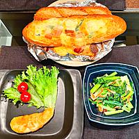 - 4 サニーレタス、トマトをのせたお皿に盛り付けて完成です。