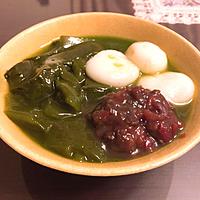 - 6 2をスプーンですくい器に盛り、5、つぶあん、クコの実を盛り付け、仕上げに3をかけたら完成です。