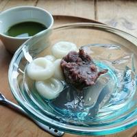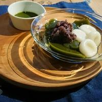 抹茶の味が濃厚なあんみつの紹介です。抹茶寒天はやわらかめの配合でくちどけ滑らかな食感です。抹茶シロップは砂糖少なめなので、お好みでシロップをかけてお召し上がりください。大人のおやつタイムにぜひお試しください。