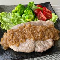 にんにくの風味が効いた玉ねぎソースが決め手のポークステーキです。玉ねぎをすりおろして火を通すことで甘みが増し、さっぱりとした味わいに。豚ロースと相性抜群で、肉汁ジュワッと、お肉も柔らかく仕上がります。ソースは付け合わせの野菜にもご飯にも合うと好評です。ハチミツを加えるとまろやかさがアップ。お店のような本格的な一品が簡単に作れると、家族からの評価も上々です。