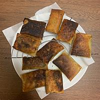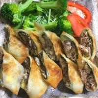 - 8 春巻きの皮に1、7、2の順に乗せて包み、水溶き薄力粉を塗って閉じます。