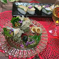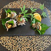 さざえが美味しい季節。しょうゆ味ツボ焼きより、やっぱりガリバタソース派です。穂紫蘇と大葉で爽やかな香りもプラスして、肝までガリバタソースで美味しくいただきました。
