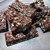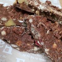 ザクザク食感がたまらない! グラノーラたっぷりのチョコバーです。 溶かしたマシュマロにチョコレートを混ぜて固めるのでずっしりとしますが、ナッツやドライフルーツが入ったグラノーラが軽さを演出してくれます。