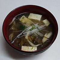 しめじと白髪ねぎ入れました。豆腐は木綿です。もずくがプルプルで美味しかったです😋🍴💕