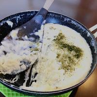 牛乳は無調整豆乳でも代用いただけが、ダマにならないように火加減には注意してください。 汁気が少ないようであれば、少し牛乳を足してください。 塩加減は、お好みで調整してください。