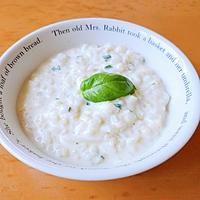 バジルの風味と牛乳のコクがたっぷり染み込んだリゾット風です。 2種類のチーズをプラスして、贅沢なひと皿に仕上げています。 パーティーやイベントに作っていただきたい1品です。 ぜひお試しください。