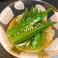 オクラをまるごと浅漬けにしてみました。ゆでて漬けるだけで簡単にお作りいただけます。白だしだけでしっかりと味が決まるのでとても簡単です。生姜の風味がアクセントになり、止まらないおいしさです。よく冷やしてお酒のおつまみにもおすすめですよ。