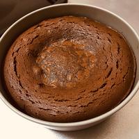 A薄力粉やココアパウダーなど粉類の配合が少ないレシピは、どうしても焼き上がり後に中心がへこみやすくなります。また、加熱で膨らんだ生地が落ち着くことでしっとりとした食感に仕上がります。多少のへこみであれば失敗ではございませんのでご安心ください。なお、生地のへこみやひび割れが大きい場合は、中心部に十分に火が通っていない可能性がございます。オーブンの機種によって火力に差が生じるため、レシピの時間は目安としてしっかりと火が通るまで加熱時間をご調節ください。 - Q
