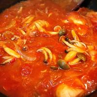 - 3 玉ねぎがしんなりしてきたら水、トマト缶、赤ワイン、ケチャップ、中濃ソース、砂糖、コンソメを加え、一煮立ちしたら弱火の中火で5分程煮込みます。