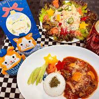 クリスマスイブの夕食にに作りました🎄🎅赤いトマト🍅の色味が綺麗なハッシュドチキンはクリスマスにピッタリなレシピでした。簡単で見栄えもよくラッキーでした🌈💙