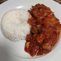 普通は牛肉で作るハッシュドビーフをお手軽な鶏むね肉で作りました。フライパン1つで作れる時短・簡単レシピです!酸味は抑えておりますので お子様にも食べて頂けると思います。お好みでポーションミルクや生クリームをかけてお召し上がりください。