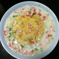 「ザーサイのチャーハン、カニカマの餡掛け」