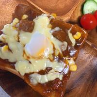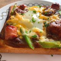 レトルトカレーでお作りいただける、簡単トーストのご紹介です。カレーとチーズの組み合わせがとても美味しい一品です。とろーりとろける半熟卵も食欲をそそりますよ。レトルトカレーはお好みの辛さのもので作ってみてくださいね。