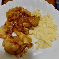 鶏もも肉でつくりました。片栗粉まぶした後、切ってから焼きました。卵は2個にしてほかの調味料はレシピ通り。玉ねぎはみじん切りににしたあと、650wで1分30秒チンしたら、辛みがなくなりました。