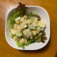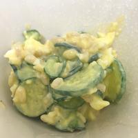 もち麦を丸粒のブルグルに変更し、きゅうりは軽く塩揉みして作りました。タラゴン追加。ハーブと粉チーズの香りが良く、お洒落な卵サラダでした。食べ応えがあるので軽食にもなりますね。