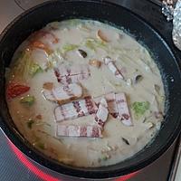 ベーコン深めのフライパンで炒めたらホタテ、ニンジン、えのき、シメジ、タラコ、キャベツを賞味期限切れ牛乳600mlと共に投入、小麦粉使わない時は市販のカルボナーラパスタソースでもいいです、コンソメ半分くらいで味付けお好みで仕上げに溶き卵やとろけるチーズやガーリックバターで味付けしてみて下さい。作成動画はこちらも参照https://youtu.be/LQk7ZLhVfgI