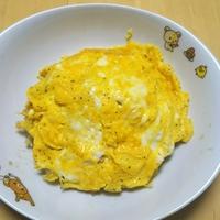 - 8 別のフライパンを中火に熱してサラダ油をひき、3を入れ、木ベラで大きく混ぜます。半熟状態になったら火を止めます。