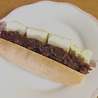 - 2 ホットドッグパンにクリームチーズを塗り、つぶあんをのせ、1を挟みます。