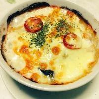 - 6 一旦取り出して、上にピザ用チーズをのせて、チーズに焼き色がつくまで再び180℃で焼きます。