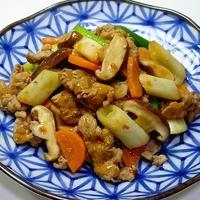 - 4 1を入れて中火で炒め、油が全体になじんだら2を加えます。豚こま切れに火が通り、味がなじむまでさらに3分ほど炒め、火から下ろします。