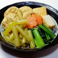 - 準備 ふきの水煮は水気を切っておきます。 がんもどきは熱湯をかけ、油抜きをしておきます。