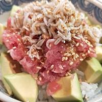- 3 器に1、ネギトロ、釜揚げしらす、白いりごまをのせ、2をかけて完成です。