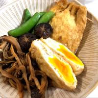 油揚げにお出汁の旨味がしみしみと染み込み、中の卵はふわっとほっくりとした食感です。柚子胡椒の爽やかな香りがほわっと漂い、ピリッとした辛みがアクセントに。じっくり煮込むと卵は半熟からしっかり目まで好みの固さに調整できます。作り方も簡単で時短なので、もう一品欲しい時や、お弁当のおかずにもぴったり。冷めても美味しく、作り置きにも向いています。