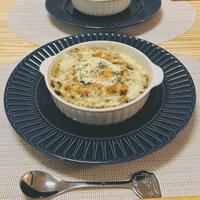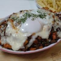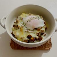たくさん作ったラタトゥイユからキーマカレーにアレンジして、残ったキーマカレーをドリアにしたよ―😆 温泉卵を乗せてピザ用チーズとパン粉をかけて焼いてみたらとても美味しくなった😋
