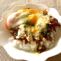 カレーの辛みとチーズのとろ〜り感が絶妙にマッチする一品です。仕上げに温泉卵や生卵を加えると、更にコクと深みが増して贅沢な味わいに。チーズの上にパン粉をかけて焼くと、カリカリ食感も楽しめます。野菜のみじん切りは手間がかかりますが、ピリッとしたスパイシーさとまろやかなチーズの相性が抜群で、子供から大人まで大絶賛の美味しさです。キーマカレーの残りでも簡単に作れます。