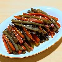 - 2 にんじんは皮を剥き、縦に細切りにします。