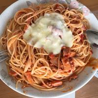 ナポリタンが辛いのがとても新鮮で美味しかった!チーズを焼くと少しカリッとして普通に溶かすより良かったです!