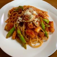 バジルがなかったのでアスパラガスで代用しました😊