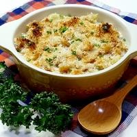 - 8 耐熱皿に移し、パン粉をかけトースターで8分ほど焼きます。