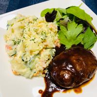 後藤シェフのハンバーグのレシピを参考にして、付け合わせにこちらのポテトサラダを作りました。