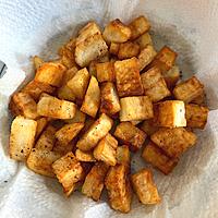 - 3 2の全体に焼き色がついたら、お皿に盛り、塩と黒こしょうを全体にまぶし、ドライパセリを散らしたら完成です。