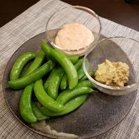 今晩のおかずに、スナップえんどうと明太子のディップソースはいかがでしょうか。甘みがあり、シャキシャキとした食感のスナップえんどうに、コクのある明太子のディップソースをつけると、とても美味しいですよ。ぜひお試しくださいね。