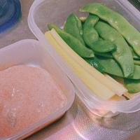明太子とマヨがとても食欲を増進させます。スナップえんどうの茹で加減が難しかったけど、素材の味も感じられて美味しかったです。