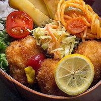 レモン絞り、ソースで…。