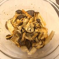 レンジ後きのこの水分が多い場合は、鶏ガラスープの素を少し多めに入れて味の濃さの調節をして下さい。