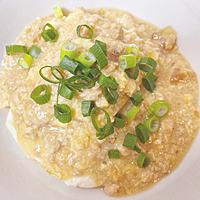 - 5 4を器に盛り、上からそぼろあんをかけ、刻みねぎをのせて完成です。