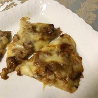 照り焼きの鶏肉と玉ねぎとチーズで作りました✨