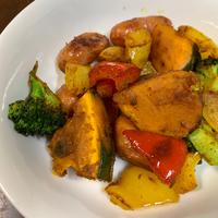 - 4 火が通ったらかぼちゃ、ブロッコリーを炒め、油が回ったら有塩バターを加え、カレー粉と塩こしょうで味を整えて完成です。